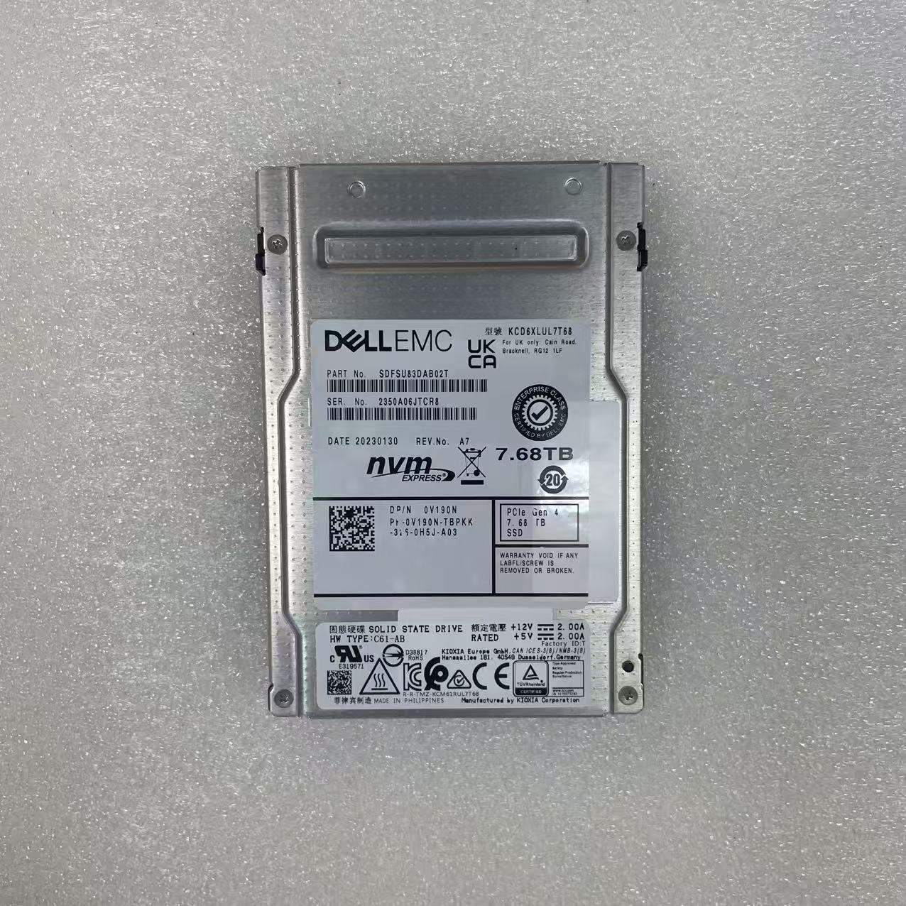 Product Description: KCD6XLUL7T68 0V190N SDFSU83DAB02T NVME PCLe GEN 4 7.68TB SSD 2.5” in Stock Hard Disk for DELL EMC