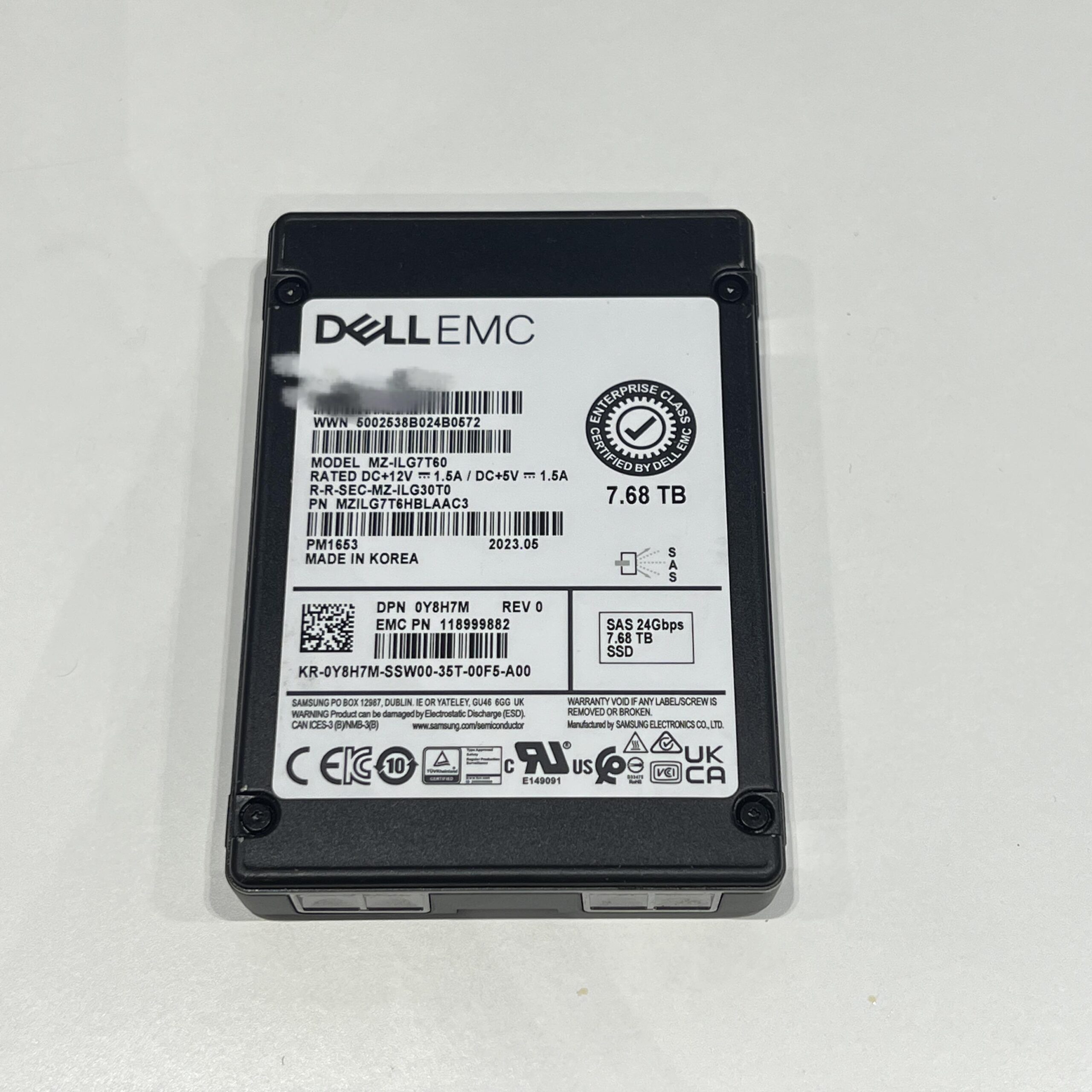 Dell EMC/Samsung MZ-ILG7T60 PM1653 118999882 7.68TB SAS 24Gb/S 2.5″ MZILG7T6HBLAAC3 SSD