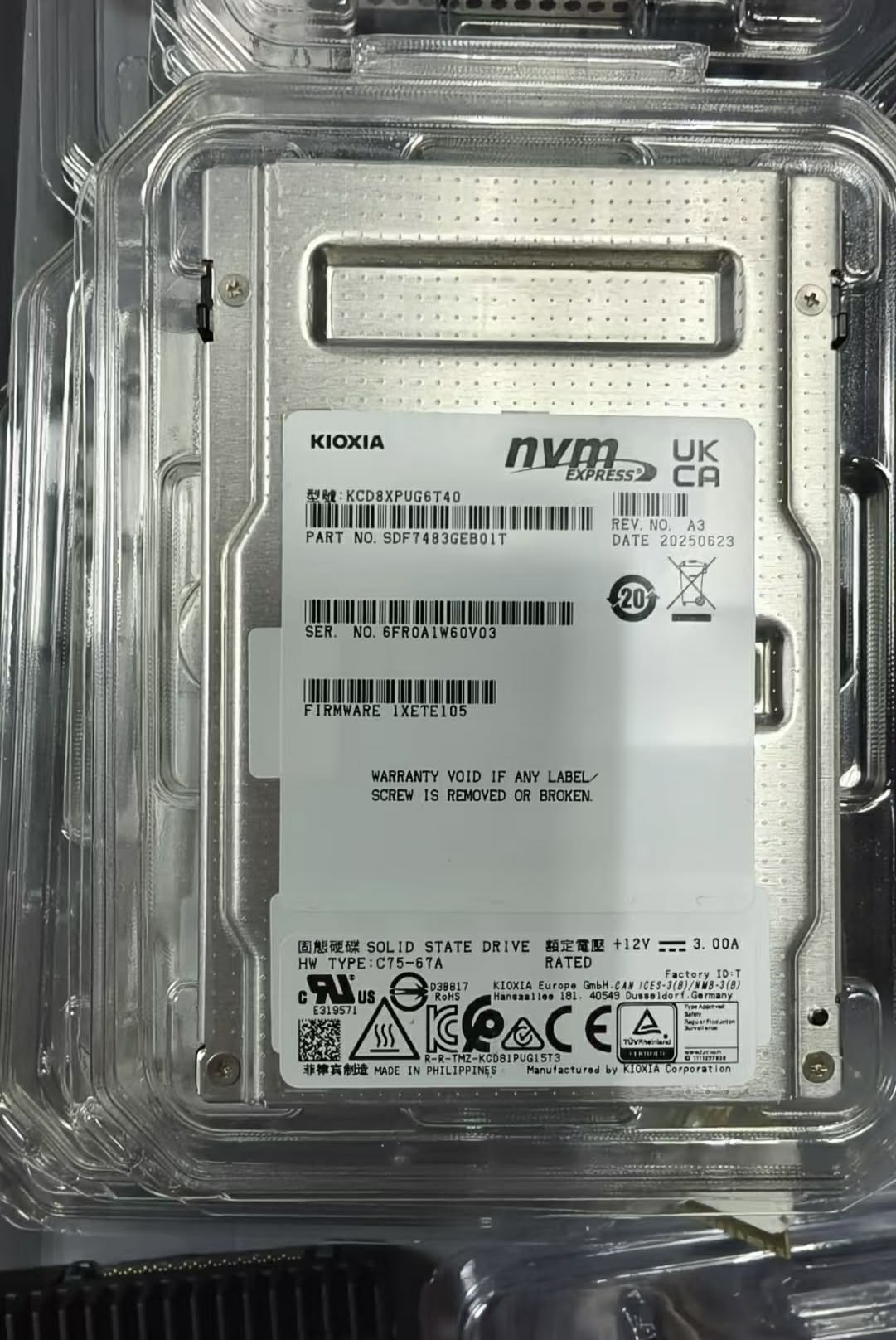 Product Description: KIOXIA KCD8XPUG6T40 SDF7483GEB01T CD8P-V Series 6.4TB PCIe 5.0 2.5″ Data Center Mixed-Use NVMe SSD